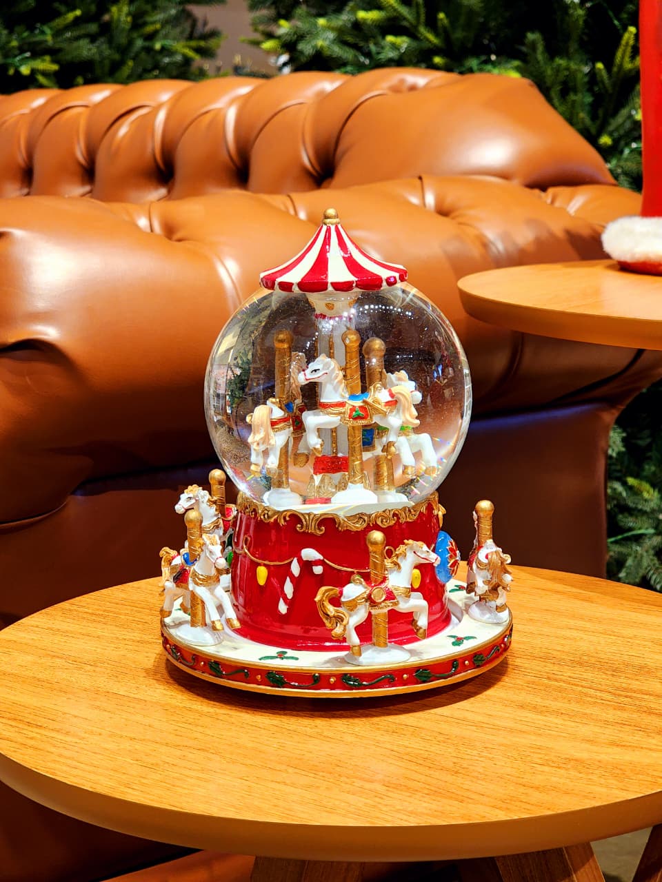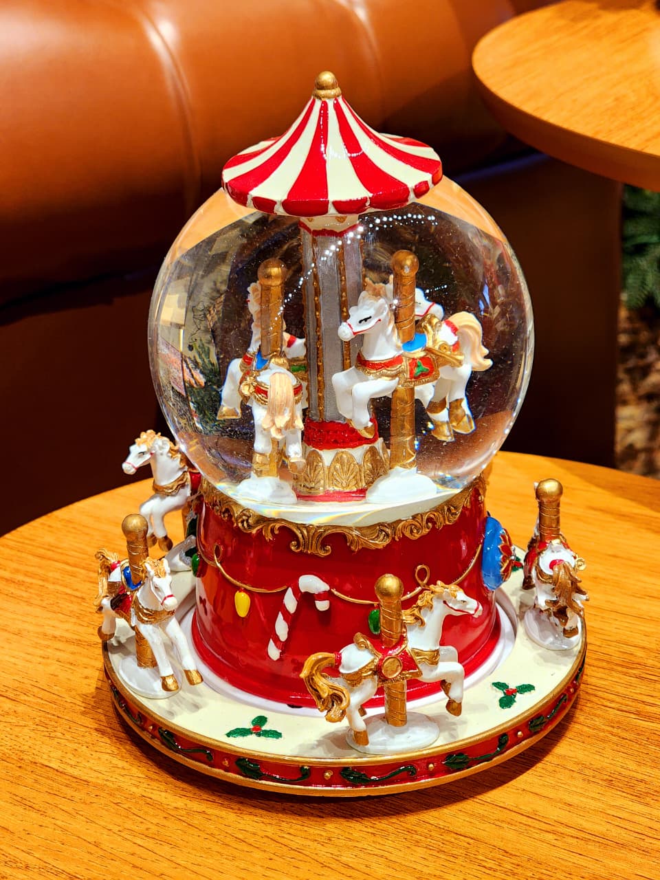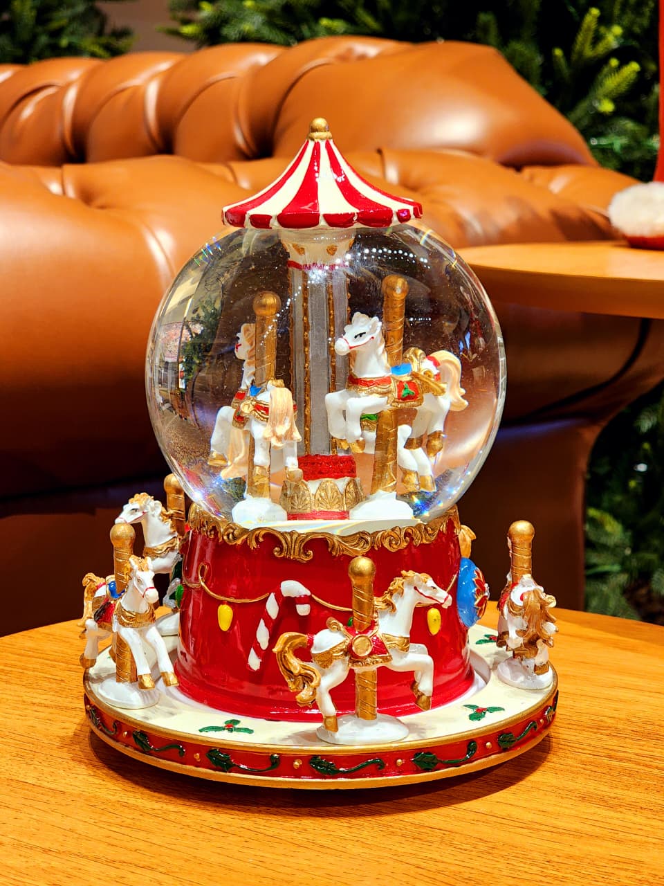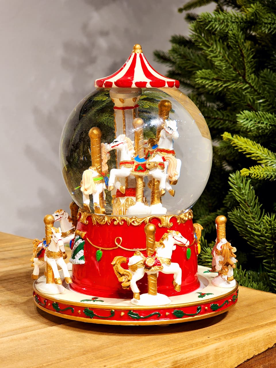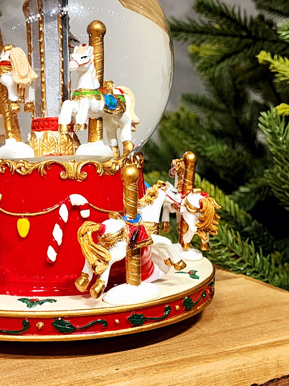 CENÁRIO NO GLOBO COM ÁGUA CARROSSEL COM MOVIMENTO, A PEÇA TEM UMA PINTURA BEM ESPECIAL E DETALHADA ESSE ACABAMENTO BRILHOSO DEIXA ELA MUITO LINDA.