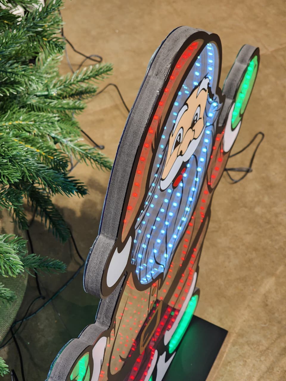 Placa luz infinita papai noel, ela vem com cabo usb para ligação em uma fonte de celular (não acompanha fonte) para uso interno